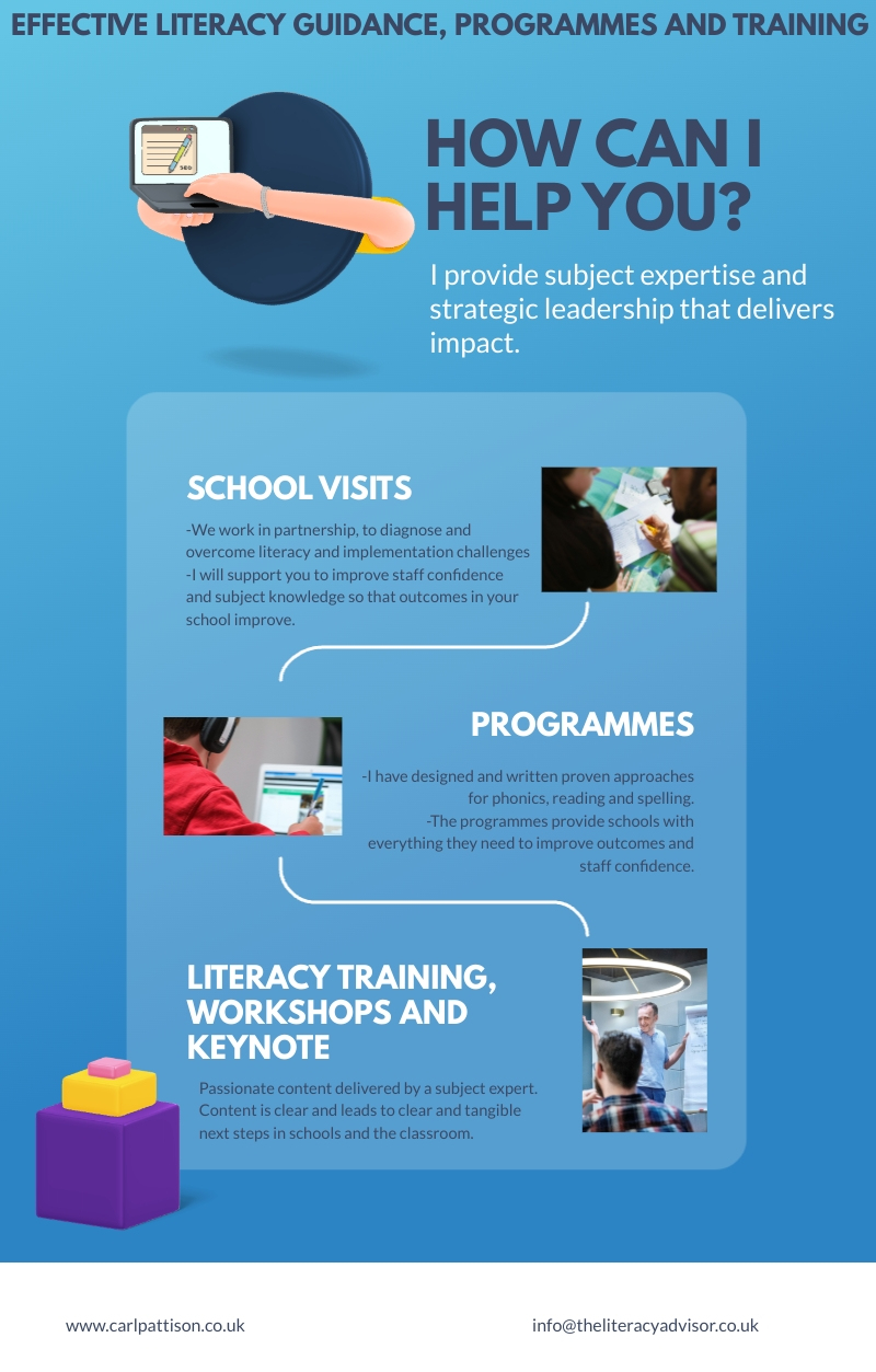 By inspiring practioners and providing the clarity they need, schools value my approach and gain a sense of belief in how they develop literacy in school.